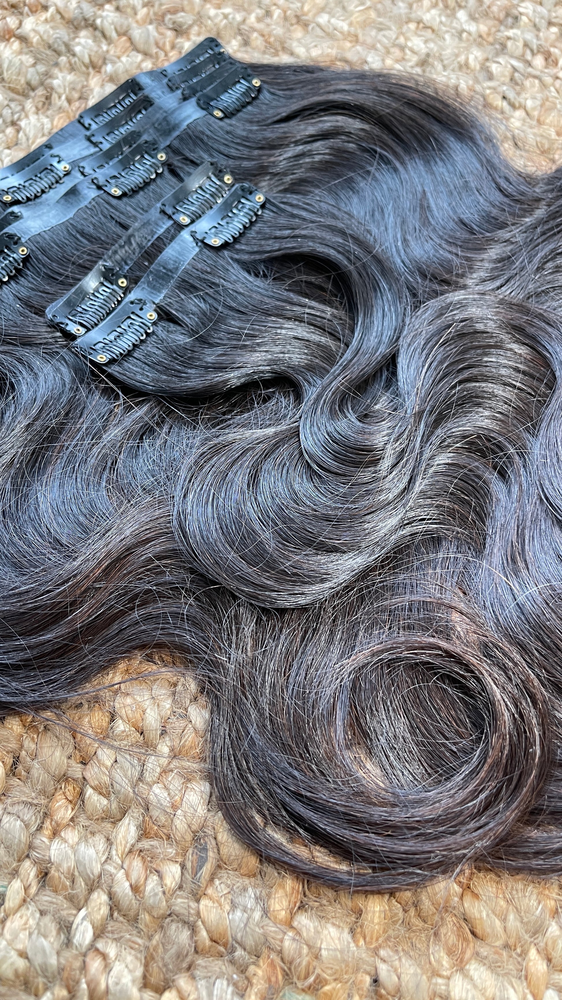 Our best seller is back!!!!! Our raw cambodian clip in sets are that girl and is the perfect option to add volume as well as length. We suggest 1 set for all lengths under 18" and your hair is not a blunt cut or short. If your hair are one or both of those things, or you would prefer a longer length and fuller look, 2 or more sets are highly suggested.